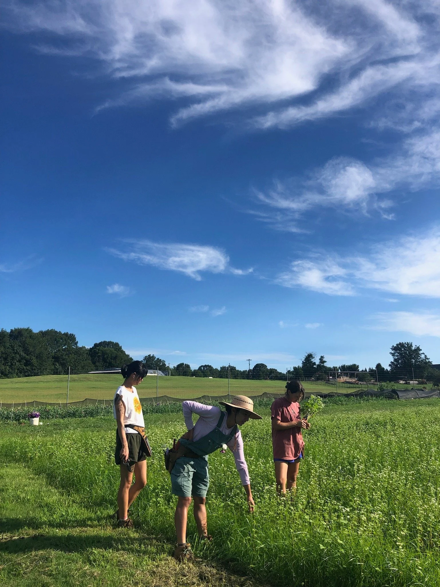 You may have noticed markets have been a little light recently! We are in a bit of a mid-summer lull, a time when our first-succession plantings of tomatoes, squash, cucumbers, and other summer staples are slowing down and producing much less, and our second-succession plantings of these crops are not yet in their abundant hour. We’ll see more headed to market in the coming weeks as these crops mature and begin to offer us larger harvests. We also had a few floral hiccups this summer with certain flower plantings failing or producing less than anticipated. The long drought earlier in the summer and extreme high temps have done us no favors, but these things happen in farming! We’re taking it all in stride and making sure to pay extra attention to those plantings that are thriving. This past week we’ve started to see an uptick in our flower harvests and are seeing to it that this trend continues through the fall. Onwards and upwards and the abundance will follow!