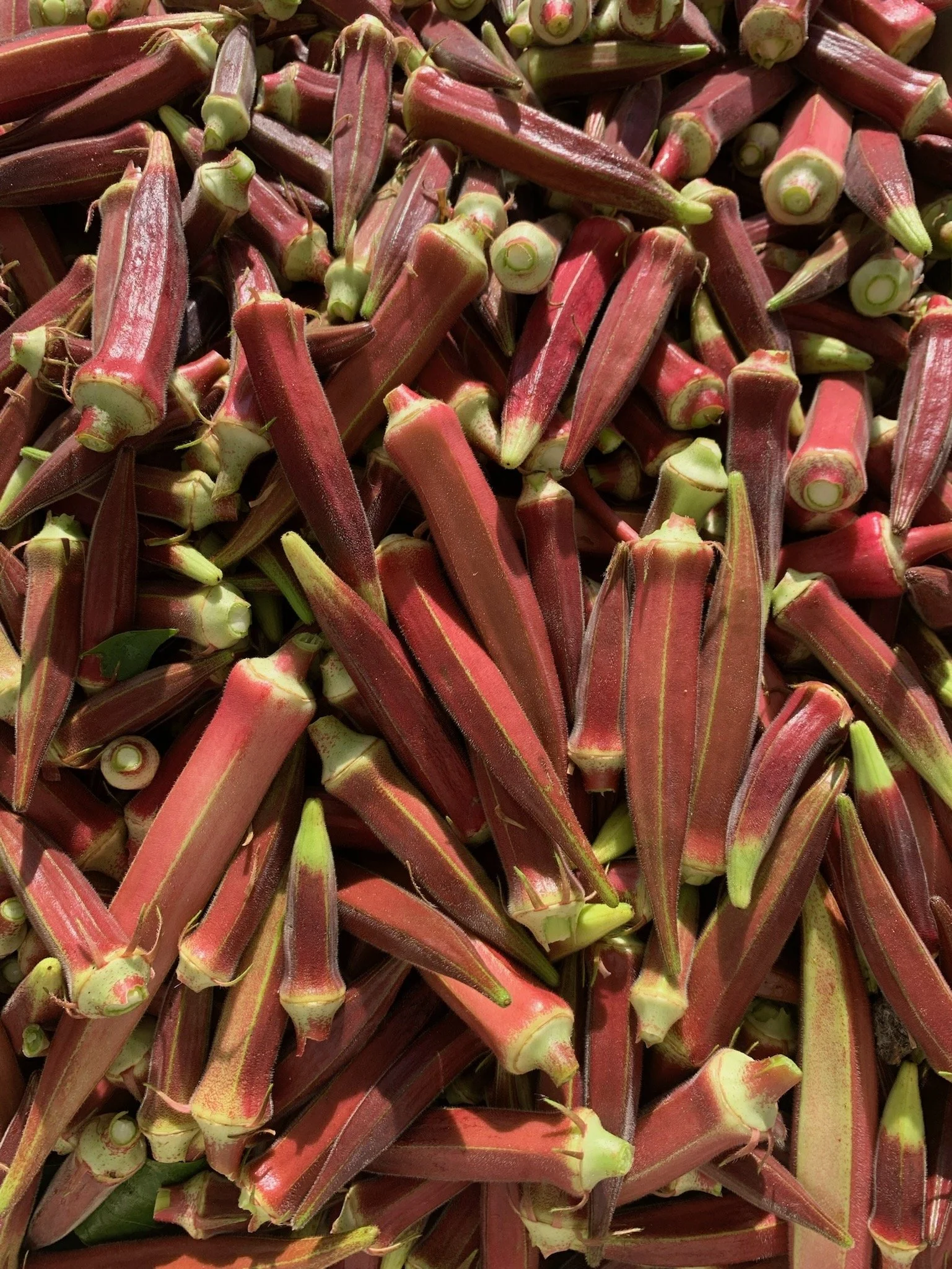 $35 share: cherry tomatoes, figs, okra, choice of peppers, sweet potato greens, slicer tomatoes, summer squash, mystery item!