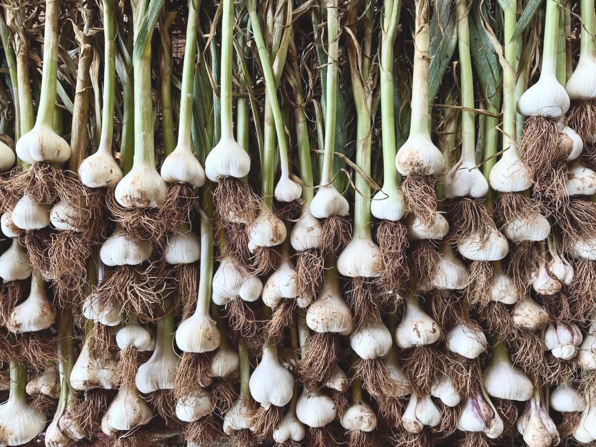 One of the big milestones we reach around this time every year is our garlic harvest! Last week we harvested all of our soft-neck garlic, and the hard-neck varieties are nearly ready—likely coming out of the ground this week or next. After a bulk harvest like this, we always set aside a bit to share fresh (it’s zingy and delicious right out of the soil!), but most of it gets strung up to cure. That’s when it transforms into the papery, familiar garlic you know and love from the grocery store—only grown with a lot more love and a lot less industrialization ;)