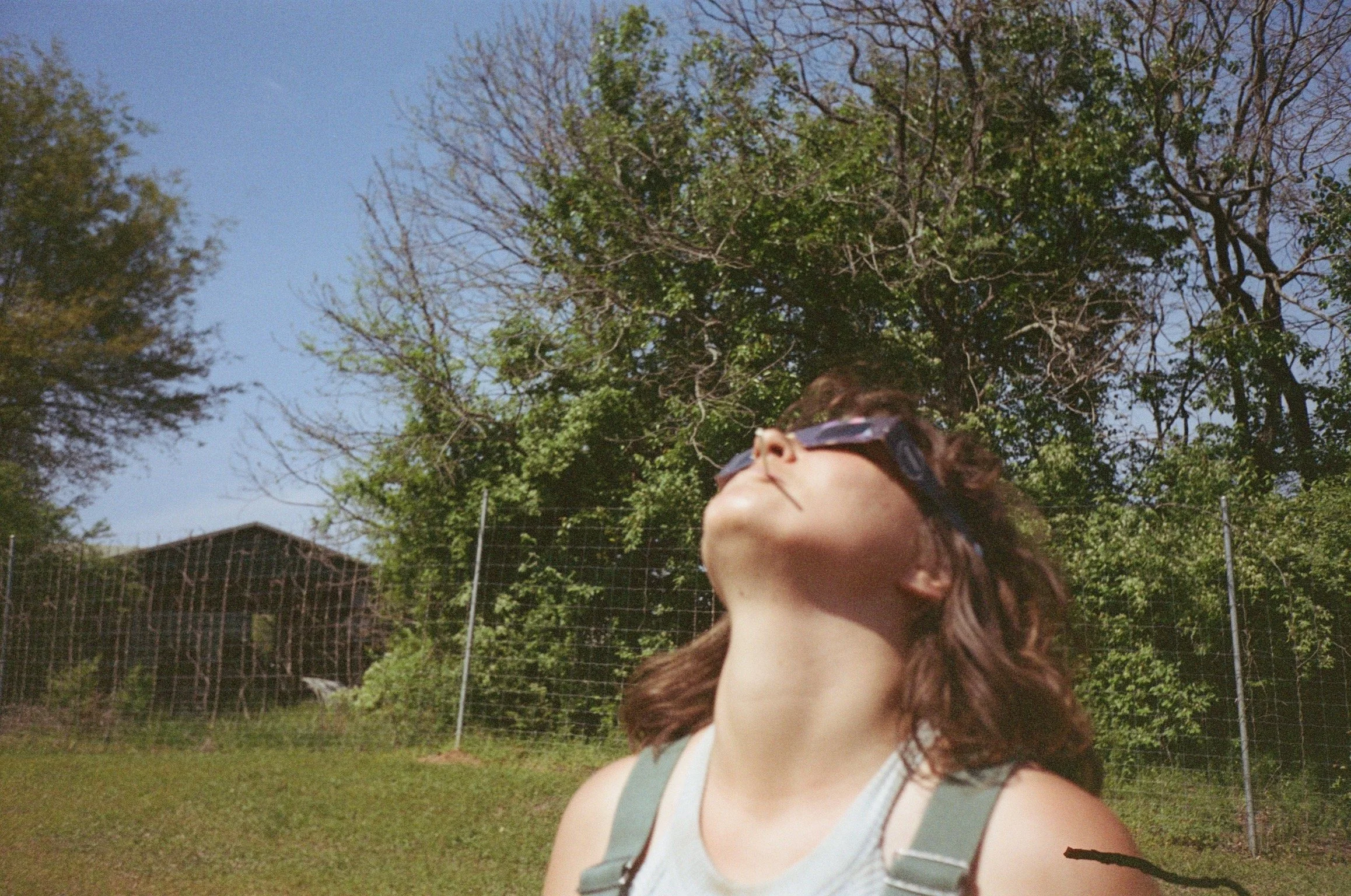 Farmer Emma stares directly into the sun with her counterfeit eclipse glasses (just kidding they were fine)