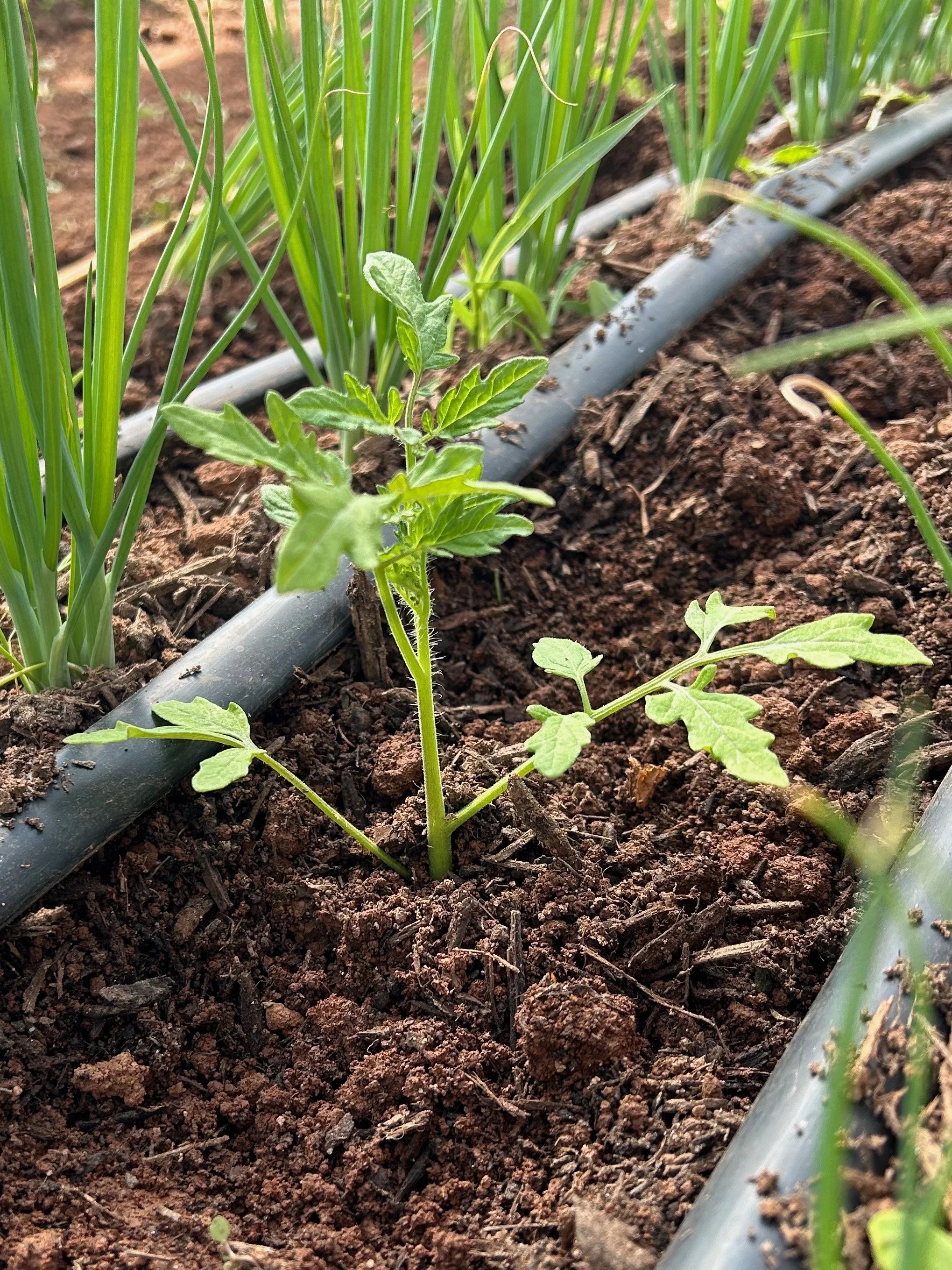 Holy moly folks, spring made quite the entrance this week, giving us harvests of both asparagus AND strawberries! What’s more, our tomato seedlings (remember this newsletter way back in January?) are looking great and we got a ton of them in the ground this week. It’s wild to know that handful of seeds pictured is now dozens and dozens of healthy young tomato seedlings. They grow up so fast :’)