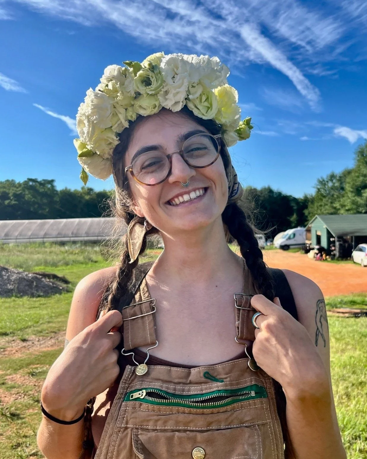 From ages 5 to 26 I was dead-set on becoming a veterinarian. I spent over 10 years volunteering and working in the veterinary field and in 2021 my partner and I moved from Philadelphia, PA to Athens, GA for me to begin veterinary school at UGA. Before classes started I had a real reckoning with that vision of the future and realized that, for many reasons, it wasn't the direction I truly wanted my life to take. In figuring out what direction I DID want to go in, I realized after talking with my chicken-and-mushroom farmer sister (Shoutout Honeymoon Farm in Oxford, PA!) that farming just might be a good fit - I love being outside, caring for plants, getting dirty, doing physical work, and working farmers markets for her was always so much fun .... so I took the biggest scariest leap of faith and left veterinary medicine to start working at Diamond Hill Farm. Three years later and I'm still smiling with dirty fingernails and so happy to be a part of this team!