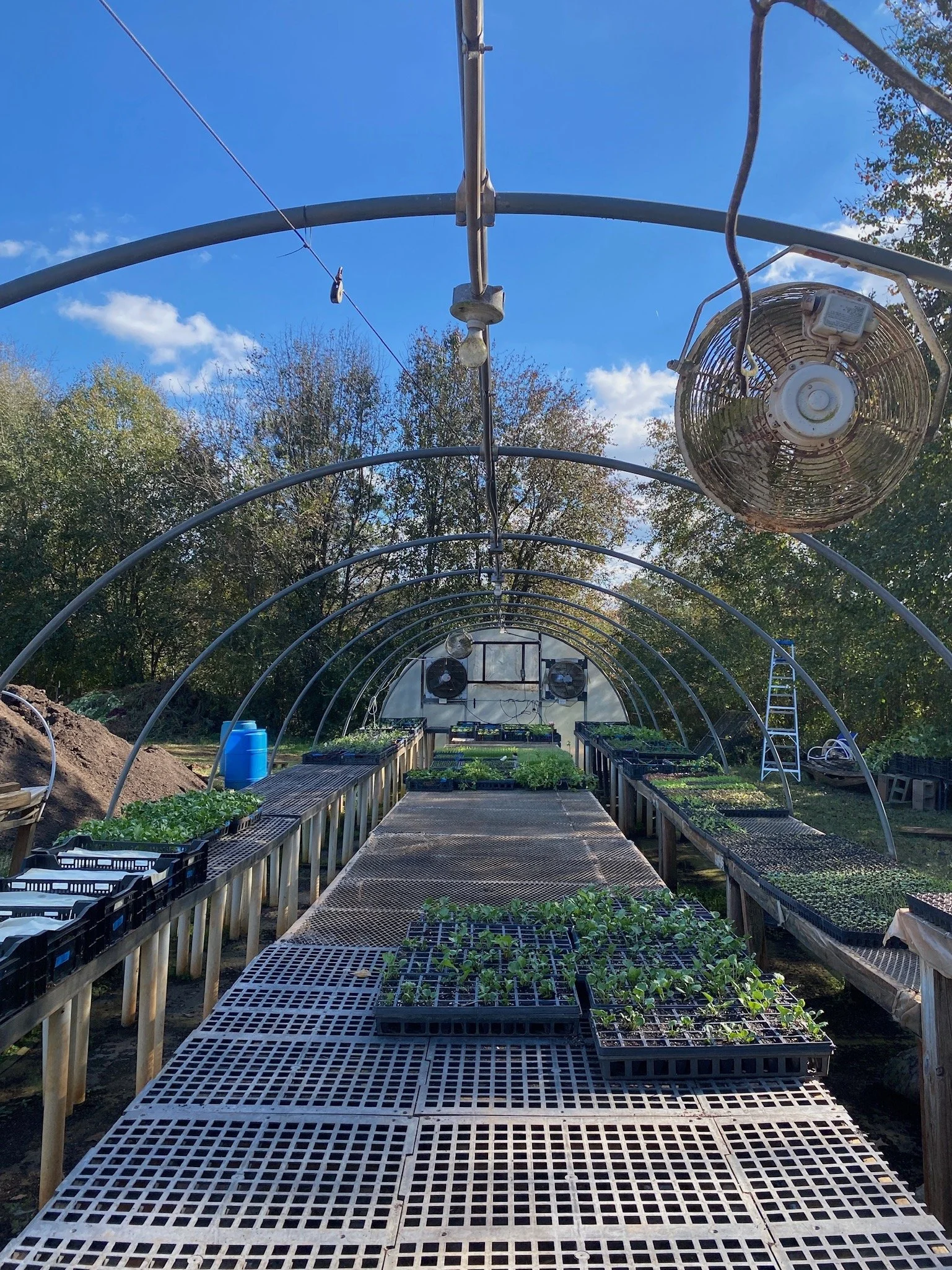 The winters always become a beautiful (read: labor-intensive) dance of opening and closing greenhouses, covering and uncovering crops, checking and double checking our weather apps, and of course the nightly prayer that the wind doesn’t blow any row cover off and we don’t pull up to the farm the next day to any disasters. May our sandbags be heavy and the wind gentle! May our propane be full and the seed house door shut firmly and securely! May our trucks start when we turn the key and the walk-behind too! Our prayers don’t always work, but we do our best and often that’s enough.