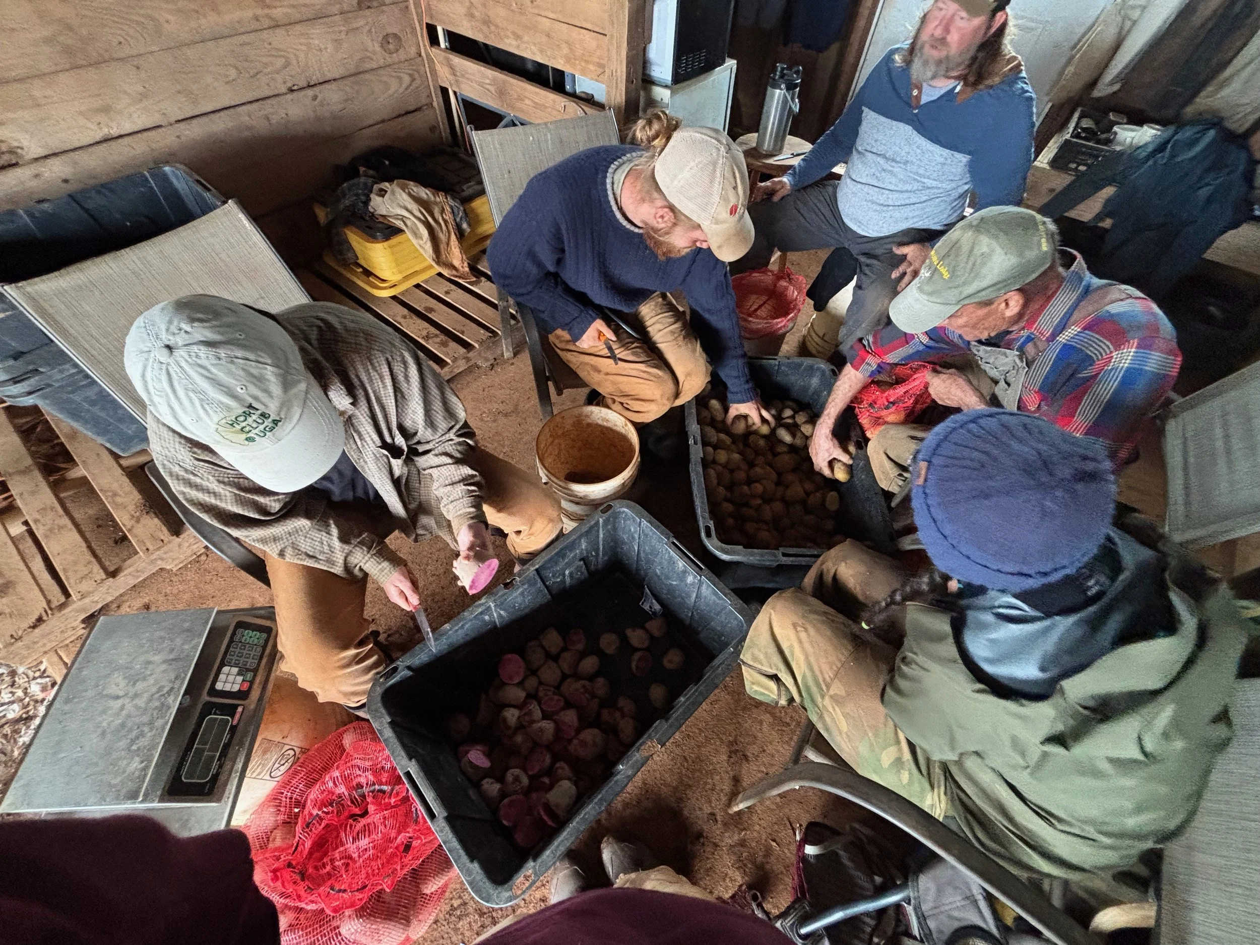 The rain also gave opportunity to work on some indoor projects, like getting our potatoes ready to be planted out! We grow potatoes by planting “seed potatoes"‘“ which are basically certified disease-free potatoes that we slice into the right size, and bury in the soil to grow into our 2026 potato crop. Last week we sat down and prepped all of the year’s seed potatoes for planting.