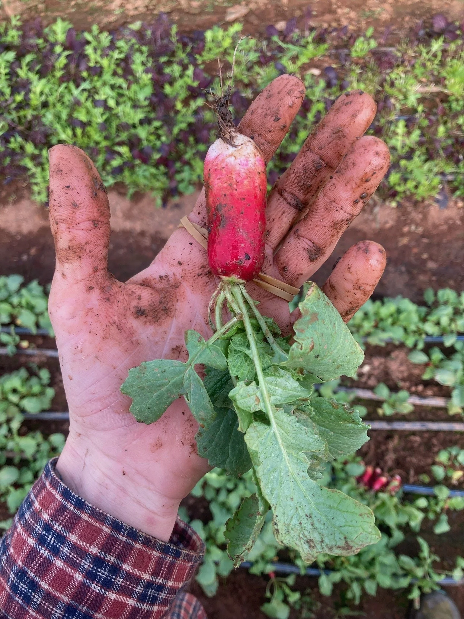 I joined Diamond Hill Farm a little over a year ago after spending 10 years as a full-time mother. I've been passionate about agriculture since childhood—my father is a farmer, and we always grew vegetables to eat and sell for some extra money. Coming from a family of nine siblings, we harvested most of the food we ate, and we always had organic vegetables at home.