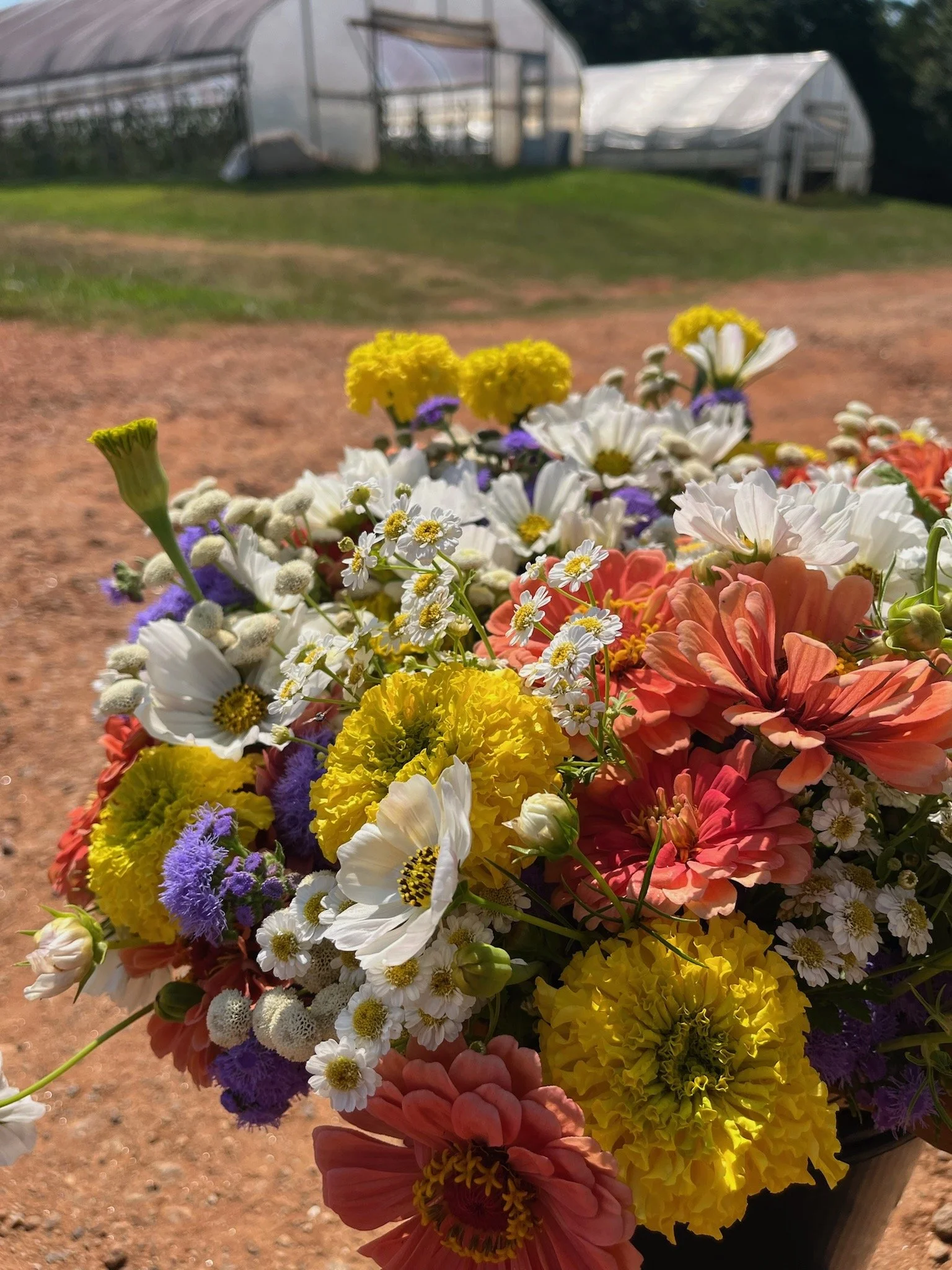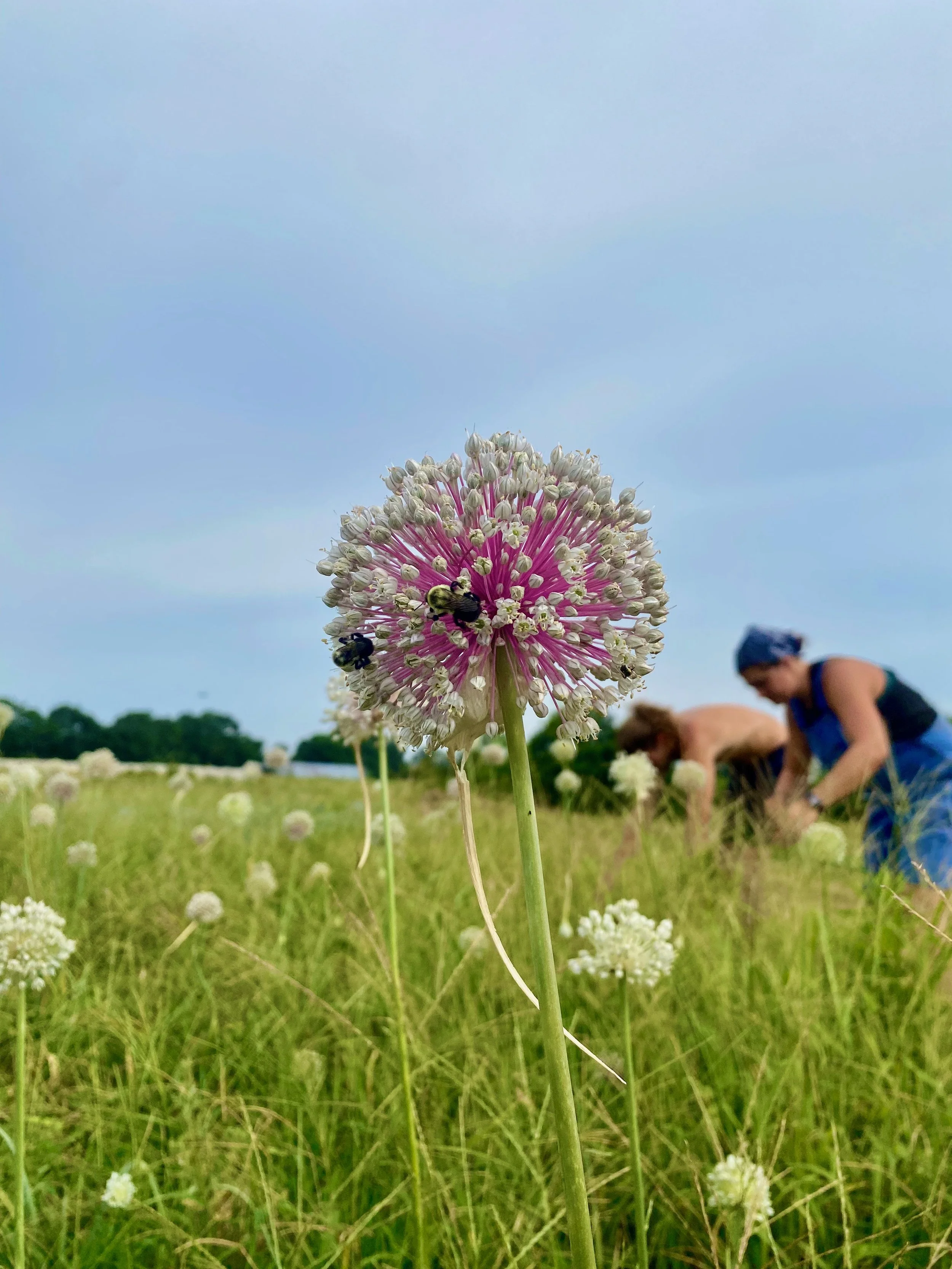 Not sure if you all have noticed, but Athens had been parched for water for some time! We didn’t quite trust that we’d see any rain with weather predictions for precipitation below 50% certainty, but as we were wrapping up field work on Thursday the sky began to darken and a breeze rolled through. We heard booms of thunder that struck faith into us that at long last, rain was about to grace us. Some of us got back to the pack shed before the skies opened up and others (shoutout to Emma who was seeding sunflowers in the furthest corner of the farm) finished up work in a beautiful, heavy, much needed downpour. There is a special kind of joy reserved for farmers witnessing a heavy rain after a dry spell - the kind of rain that makes it seem like the sky was saving up raindrops for this very special occasion. Already drenched, a handful of us celebrated the sky’s generosity by leaning into it and witnessing it all right next to our plants - just as happy as they were to know that water is what makes this all possible!