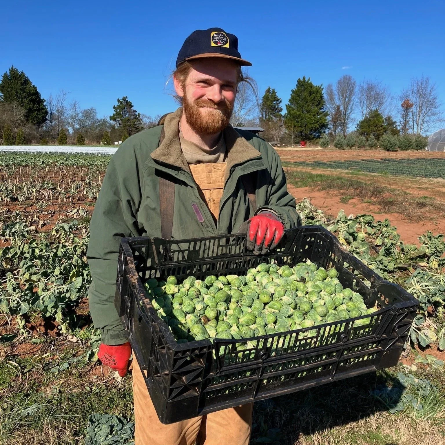 Besides prepping for the cold, we’ve been busy prepping for more spring produce! Beds are being shaped, irrigation laid out, and field plans reviewed. Lots going in the ground and lots going to our markets! We’ve been very excited about our Brussel sprouts, a crop that we grow every year that typically doesn’t produce huge harvests. It’s still modest in yield this year, but more substantial than any of our other recent attempts! Our Atlanta community members can keep their eyes peeled for these at market!