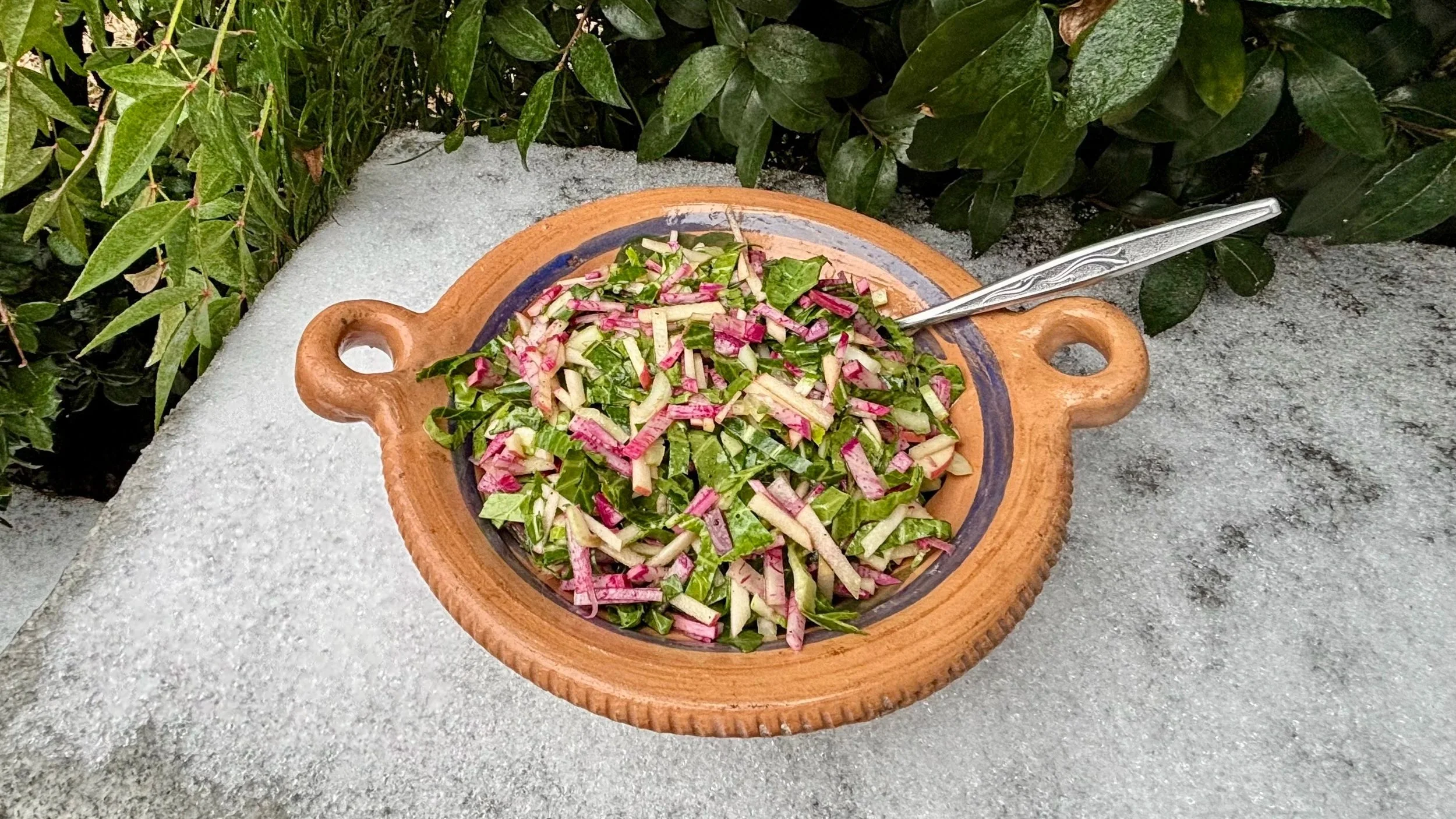 If you’re craving something a little brighter and crisper, try Stephen Satterfield’s Apple, Bok Choy, and Radish Slaw from his cookbook Root to Leaf. (True story: Remembering how delicious this is and that I had all ingredients to make it, I paused halfway through writing this newsletter to put it together. Pictured here in full front-porch winter-wonderland glory.)