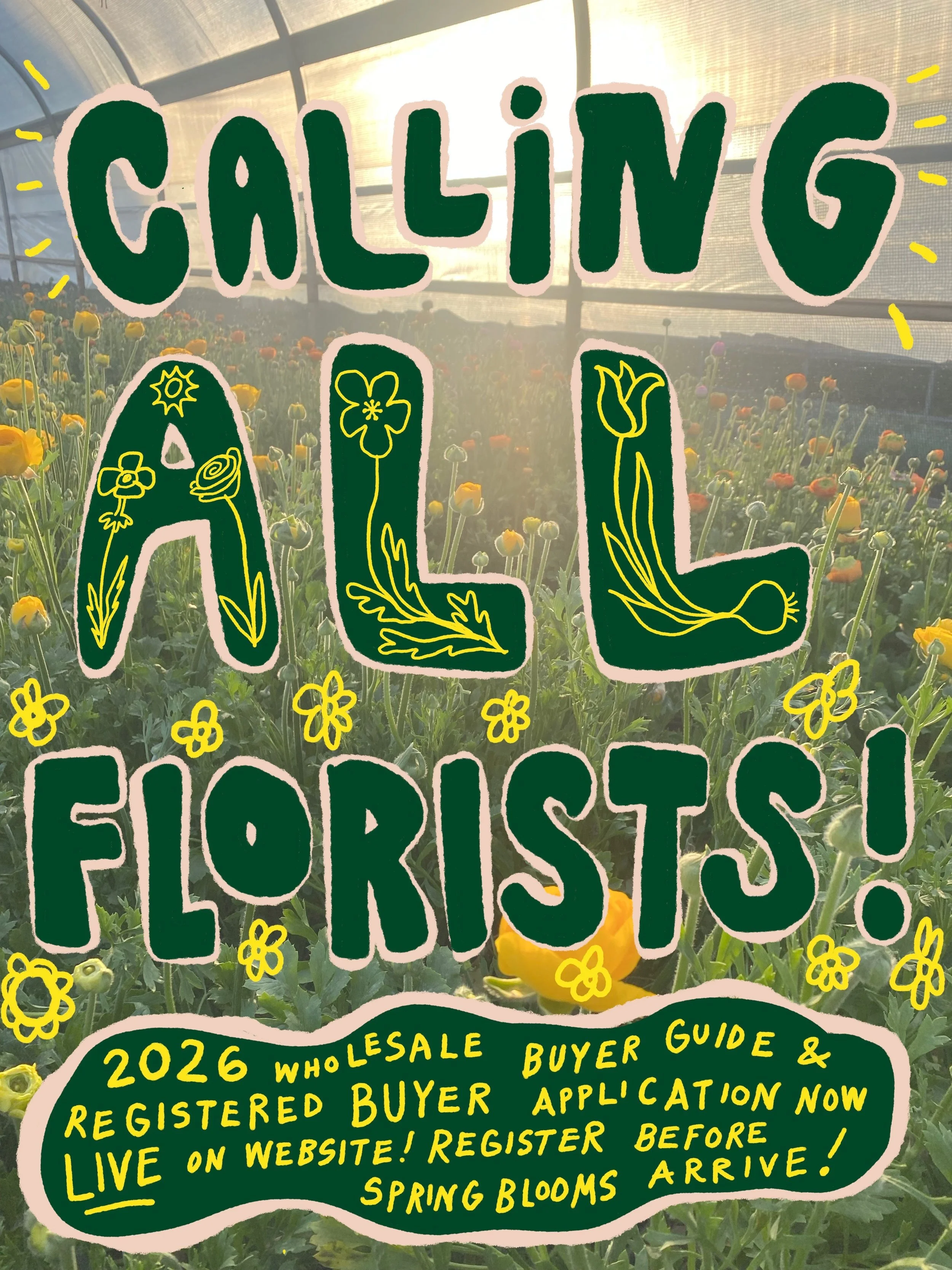 …CALLING ALL FLORISTS! 🌸 Our 2026 wholesale buying guide and registered buyer application are officially LIVE on our website! We recommend applying early ~ once March hits, we’ll be up to our eyeballs in harvesting blooms. If you’re a florist, we’d love to add you to our wholesale email list and connect you with some of the most beautiful flowers around. To start dreaming up your year ahead, take a look at our 2025 and 2024 bloom calendars for a glimpse of what we grow and offer. We’d love to be your flower farm!