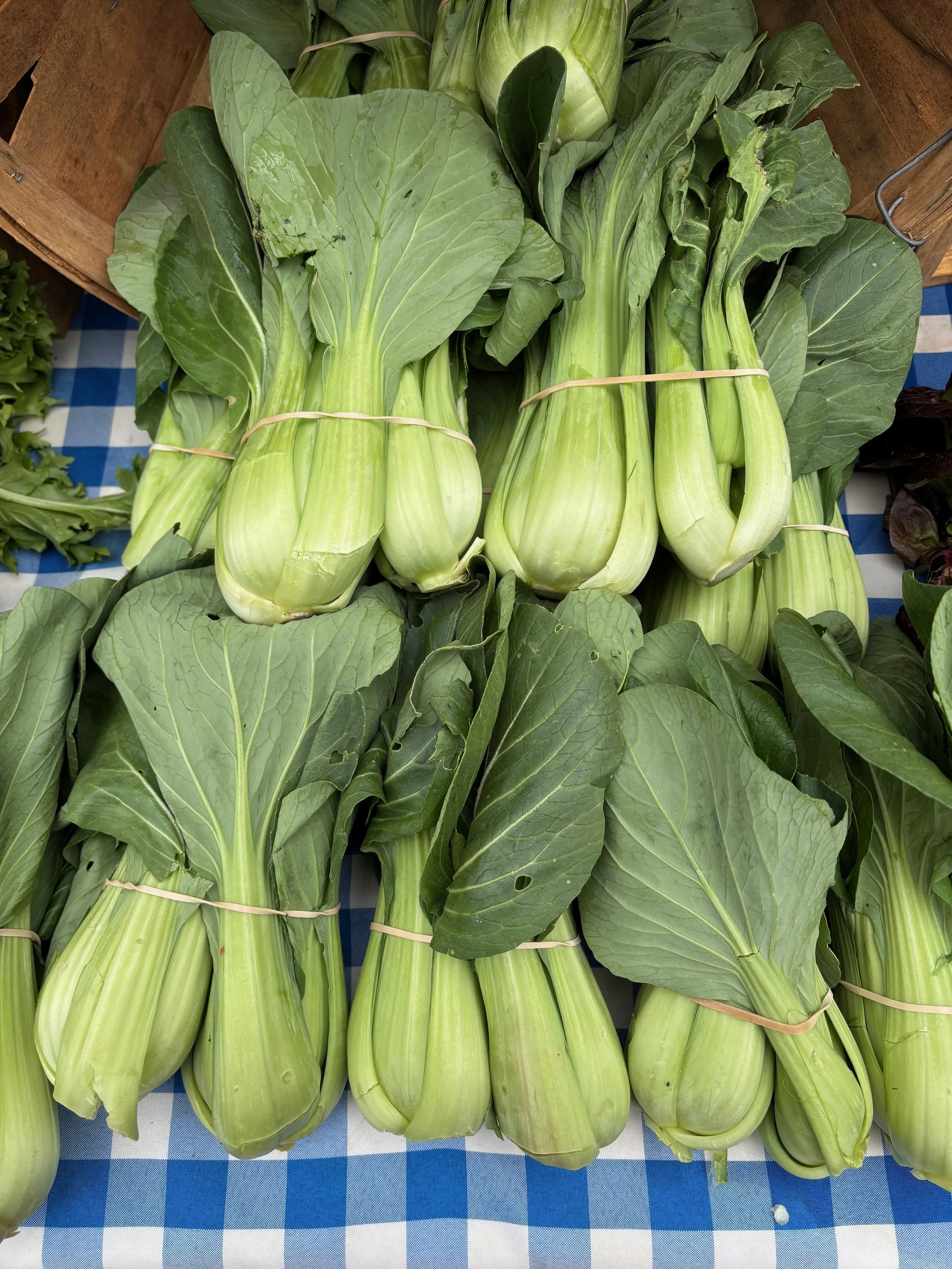 In CSA World, your shares this week contain bok choy! Bok choy (also called pak choi) originated in China and has a long history in East Asian cuisine. It’s related to veggies like turnips, mustard greens, and broccoli rabe which you can tell from its slightly mustardy flavor. Eaten raw it’s crisp, juicy, and mildly peppery, and becomes tender and slightly sweet when cooked.