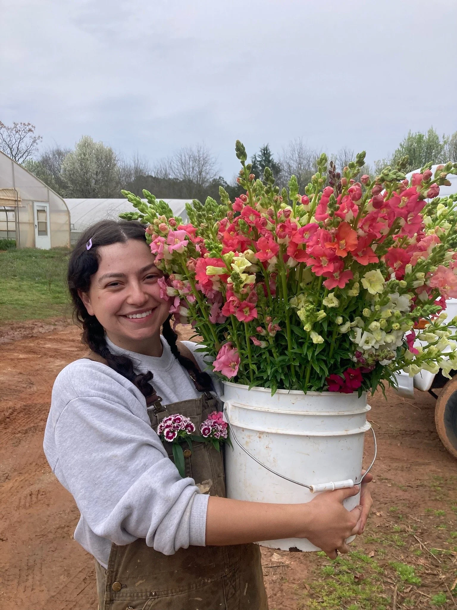 Over twenty farmers work the land at Diamond Hill Farm. Led by owner Carter and a core managerial team of eight, our farm crew is a vibrant mix of people at all stages in their farming journeys. Some have been farming for years, and others are just beginning to discover the joys of dirty fingernails and the woes of weeds! Farming on two parcels of land in the Athens area, our Veggie Teams and Flower Team work closely to keep the farm running smoothly… and everybody lends a hand where needed! Through this collaborative blend of personalities we are always learning, teaching, having fun, and setting ambitious goals for the seasons.